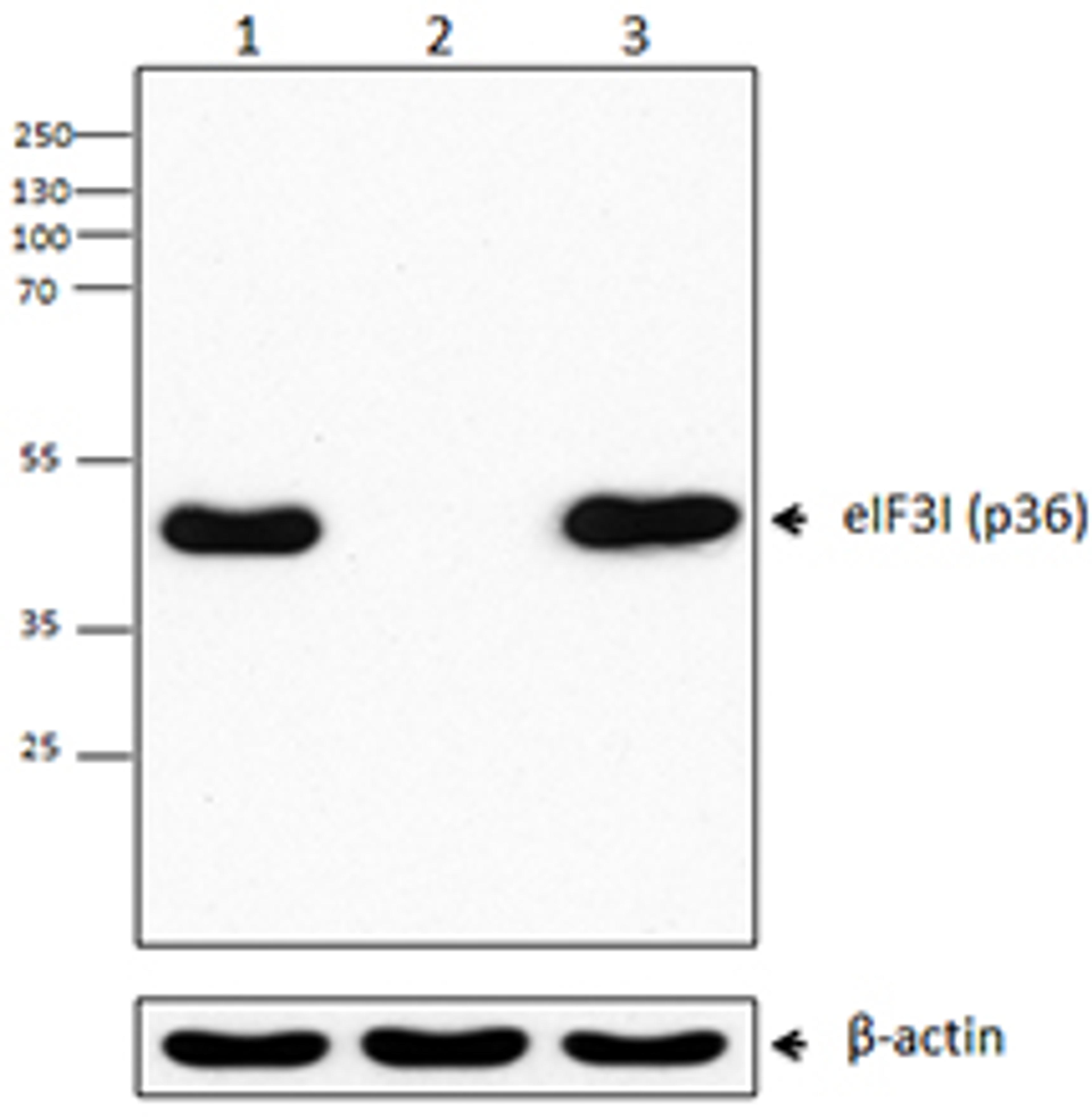 Purified anti-eIF3I (p36)ManufacturerBioLegendCatalog Number646701HostMouseReactivityHumanApplicationsWestern Blotting