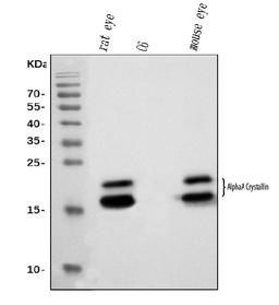 Boster Bio Anti-Alpha A Crystallin Antibody Picoband™ (monoclonal, 8H6) catalog # M01900-3. Tested in Flow Cytometry, WB applications. This antibody reacts with Human, Mouse, Rat.