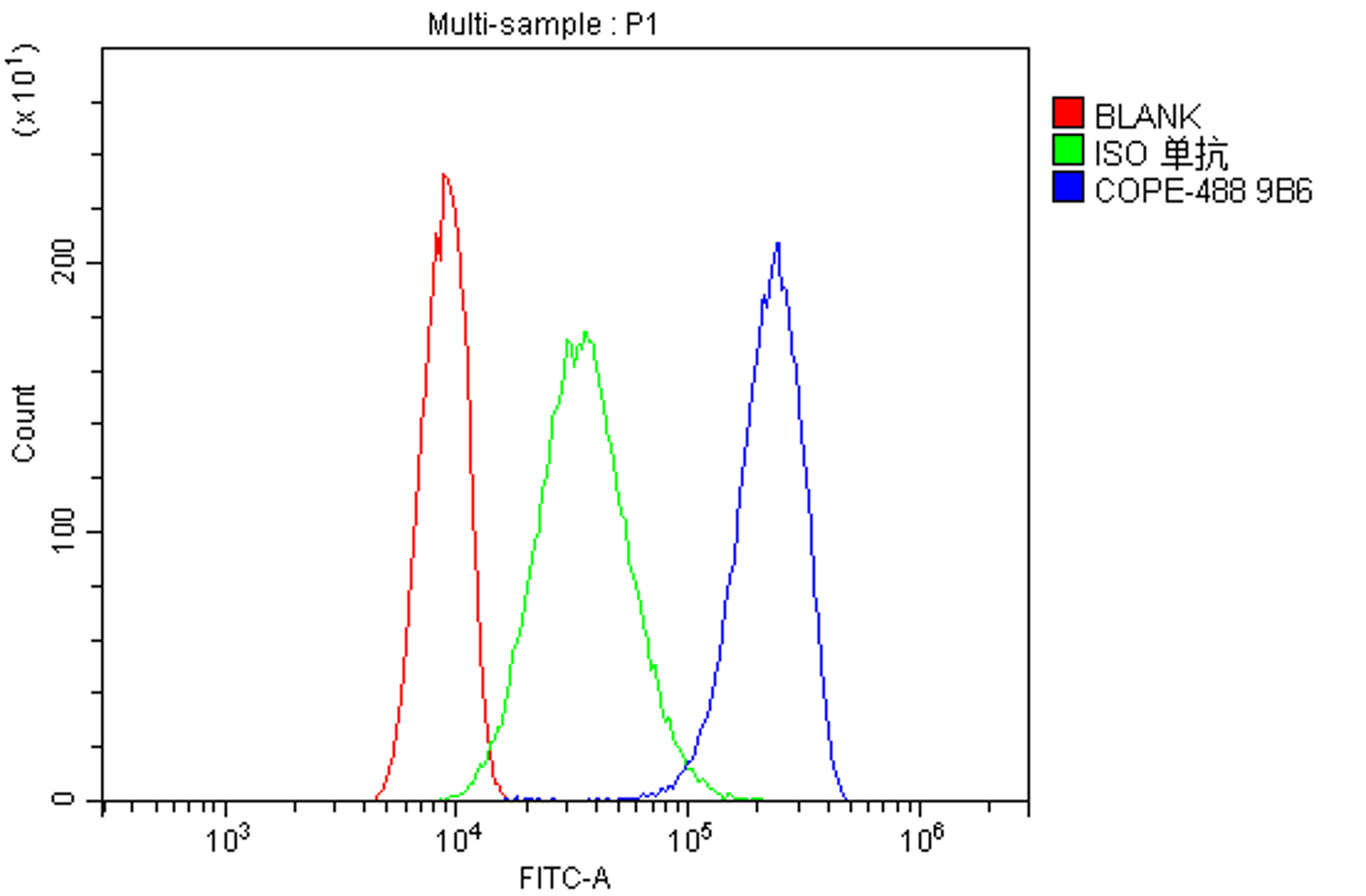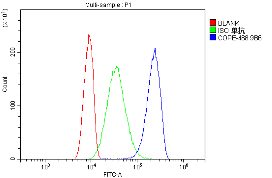 Boster Bio Anti-Human COPE DyLight® 488 conjugated Antibody (monoclonal, 9B6) catalog # M04544-Dyl488. Tested in Flow Cytometry applications. This antibody reacts with Human.