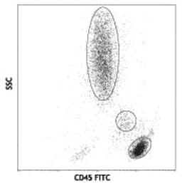 FITC anti-human CD45; Clone: HI30; Reactivity: Human, Cross-Reactivity: Chimpanzee; Apps: FC; Size: 500 tests