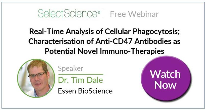 Alongside intense efforts to exploit T cells as immunotherapies for cancer, other immune cell types for novel targets are being considered, including the enhancement of macrophage function via inhibitors of CD47 “don’t-eat-me” signaling proteins, enabling tumor cells to evade clearance by neighbouring phagocytes. In this webinar, Dr. Tim Dale, co-founder of Essen BioSciences, discusses novel, direct and validated live-cell assays for identifying CD47 and phagocyte modulators. In particular, he explains how real-time live-cell analysis using pH-sensitive fluorescent probe-labeled target cells can be used to visualize and quantify phagocytosis. Watch the webinar here>>>