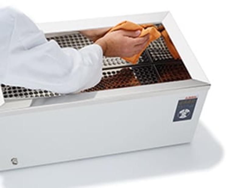 Since no disturbing functional elements are installed in the robust stainless steel baths, the baths can be cleaned quickly and without residue after draining. Biofilms, which serve as a breeding ground for germs and other microorganisms, hardly have a chance to adhere to the smooth surfaces of the water baths. The use of the Aqua Stabil water bath protective media from the accessory program can prevent contamination of the bath fluid. The germ-reducing effect prevents the formation of algae, bacteria, and microorganisms in the water. Attention: Aqua Stabil has no effect on contamination already existing in the water!