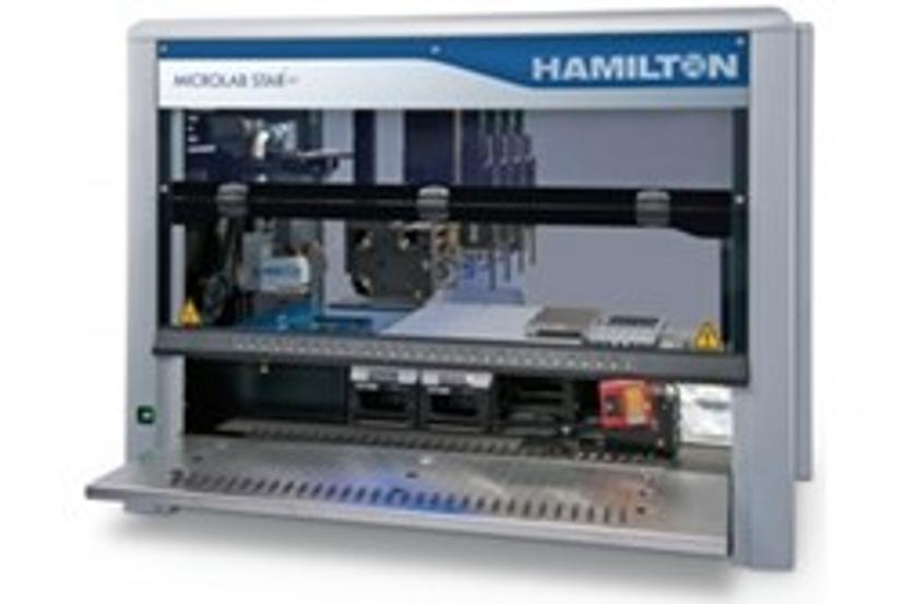 This application note describes how Hamilton´s easyPunch STARlet is used for punching and pipetting, allowing for reliable dried blood spot (DBS) FTA™ DMPK card processing. An integrated system for detecting and analyzing the DBS to preparation of samples ready for LC/MS analysis.