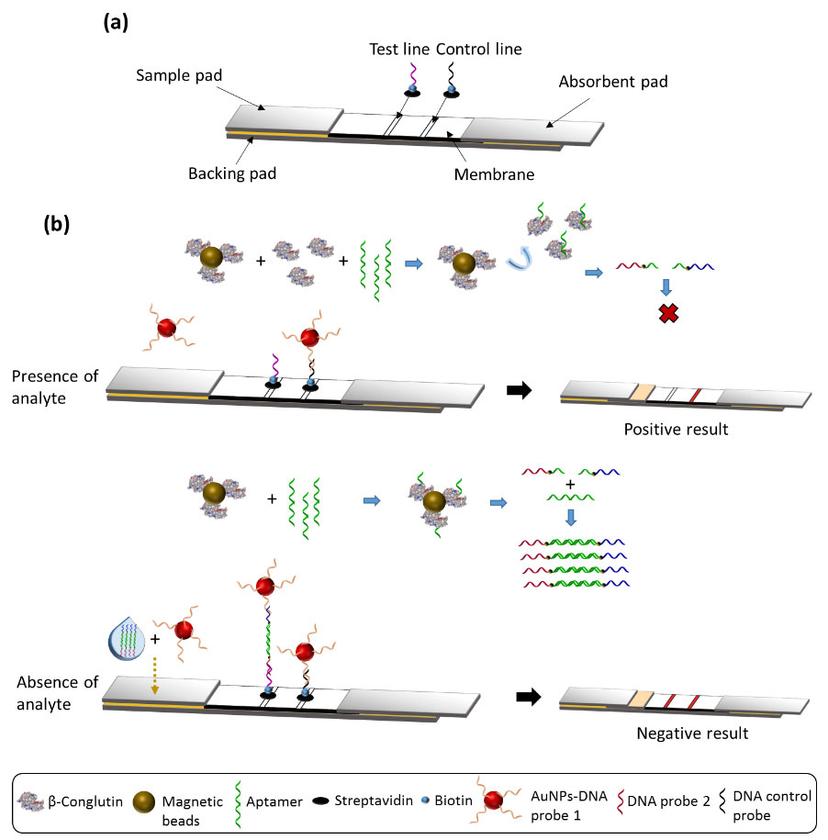 “We combine allergen binding with RPA, i.e. we use the secondary aptamer as a template for RPA. We then carry out the RPA reaction using specially designed tailed primers – this enables a direct detection of RPA amplicons via hybridization. We then quantify the products of amplification using either an enzyme-linked oligonucleotide assay or lateral flow assays,” O' Sullivan says. “So, now we have a combination of aptamer detection, which accurately binds to the specific allergen, and RPA, which amplifies the detection, working together to give us very low femtomolar detection limits of allergens.”