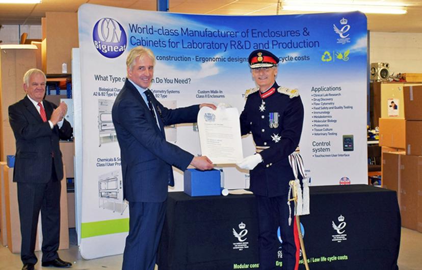The Queen’s Award for International Trade has been given to Bigneat in recognition of its outstanding short-term growth in overseas sales over the past three years. The Lord-Lieutenant carries out duties in the County on behalf of Her Majesty the Queen such as the presentation of decorations and the Queen’s Awards for Enterprise. The visit of the Lord-Lieutenant was on a typically busy day at Bigneat and this enabled him to meet the companies employees who made winning the Queen’s Award possible. He was shown around the offices, the engineering design suite and production area where the manufacture of safety cabinets, hoods and enclosures takes place.
