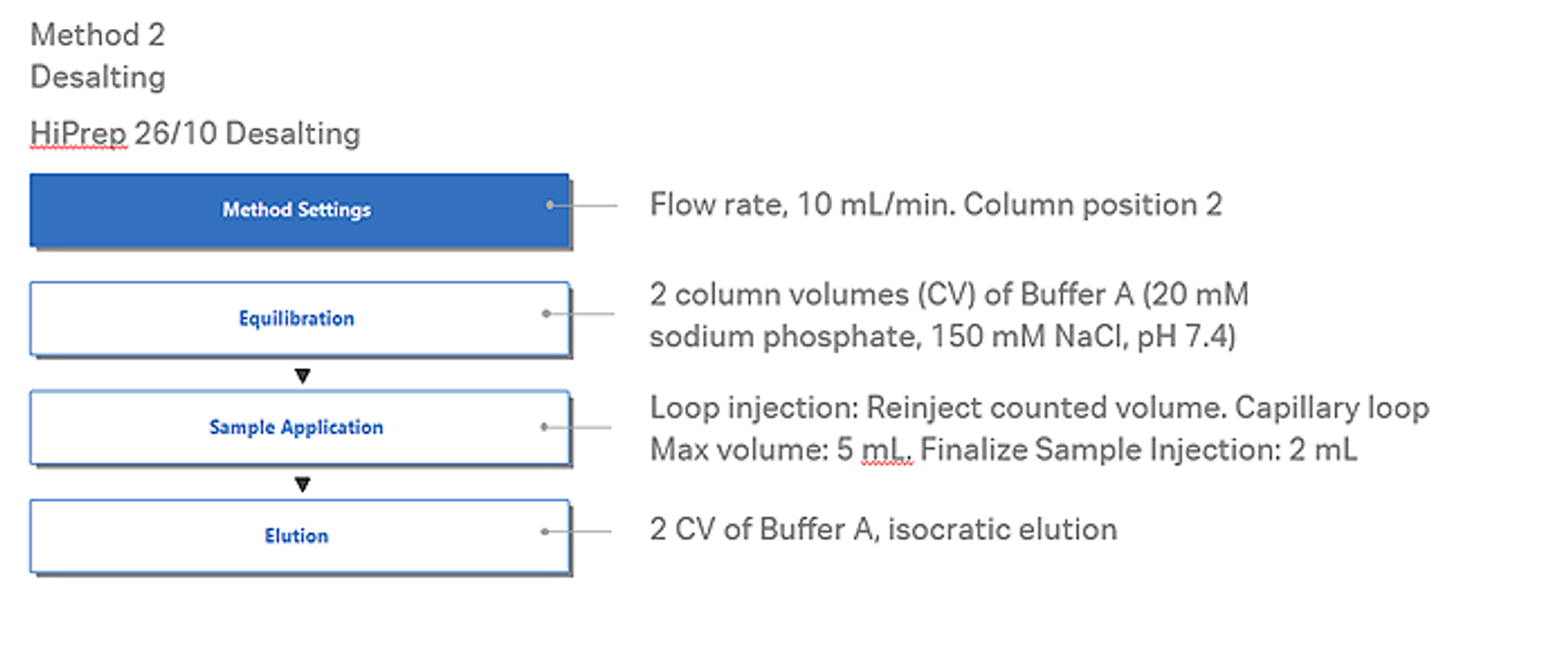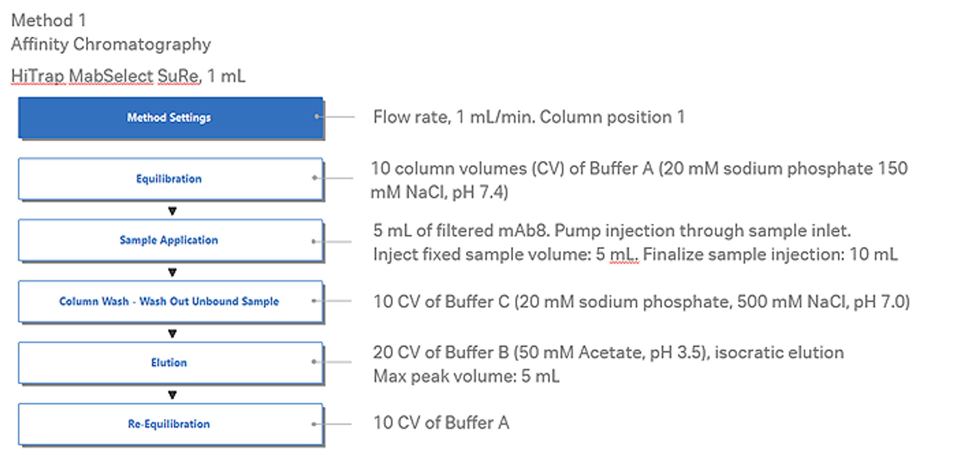 Fig 3. Predefined methods for affinity chromatography and size exclusion chromatography (desalting) steps in UNICORN software.