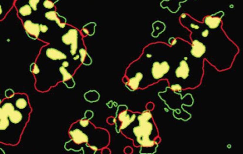 Nicola and the research team at Essen BioScience monitored cell-cell interactions between lung cancer cells and tumor cells employing live-cell ICC. RFP-expressing lung cancer cells were co-cultured with immune cells tagged with fluorescently labeled antibody, CD45. The IncuCyte analysis software created expanded image masks around the RFP signal. By quantifying the overlap of red (tumor cells) and green (immune cell) signals, it was possible to measure the interaction between the two cells.
