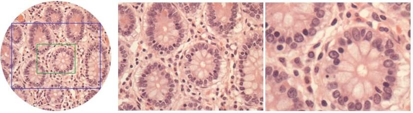 Fig. 1 - Microscope field of view at 10x and the camera field of view with 1" and 0.5" sensors