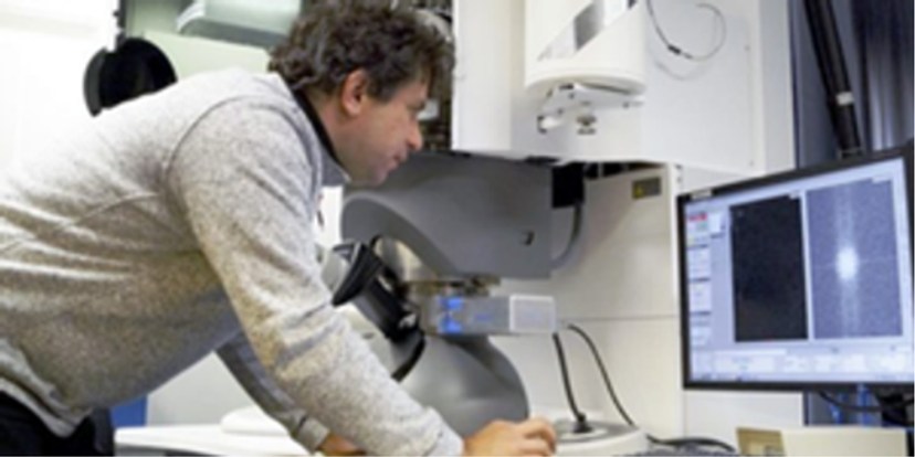 Prof. Knut Müller-Caspary at the electron microscope at LMU Munich