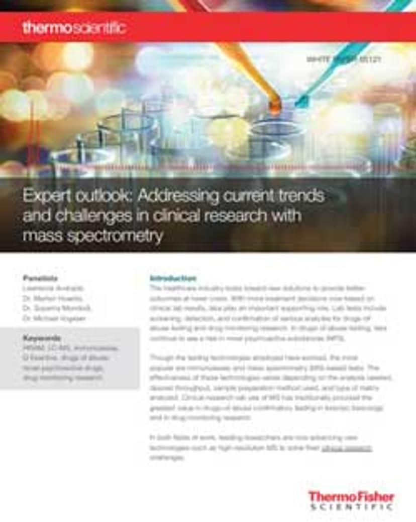 In a round table discussion, chaired by Dr. Suparna Mundodi, marketing manager, clinical research, at Thermo Fisher Scientific, Dr. Marilyn Huestis, recently retired from the National Institute on Drug Abuse, Dr. Michael Vogeser, specialist in laboratory medicine and senior physician at the Hospital of the University of the Ludwig-Maximilians-University Munich, Germany, and Lawrence Andrade, director of research and development, Dominion Diagnostics, discuss the hot topics in clinical research and the future of MS technology in clinical settings.