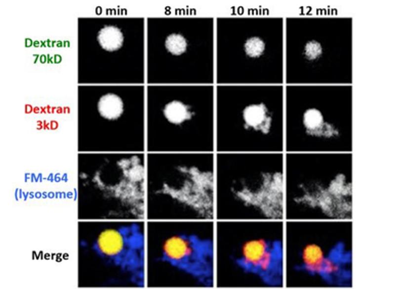By using immunostaining and live-cell imaging, we then found that both fusion and fission between pinosomes and lysosomes were required for this size-based sorting to occur. We were also able to demonstrate that the size-based sorting process is necessary for microglial presentation of exogenous antigens.