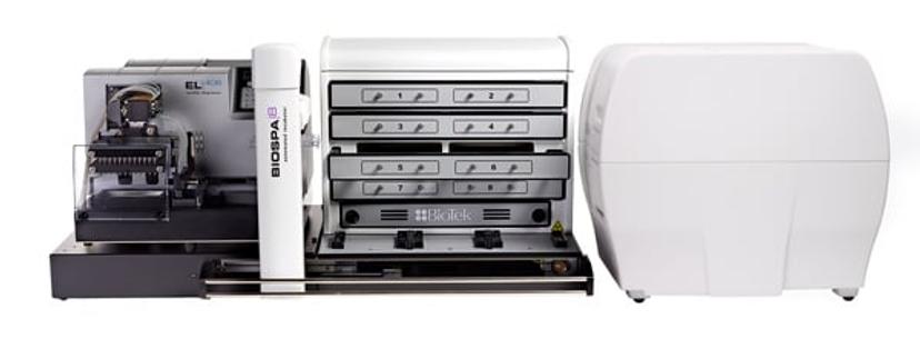 Combined in a set-up with the BioStack Microplate Stacker or BioSpa™ 8 Automated Incubator, along with the Cytation 5 Cell Imaging Multi-Mode Reader, you can create the perfect high-throughput environment for automation of endpoint processes and live cell assays, all within a laminar flow hood.