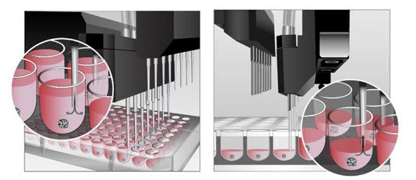 Using a single or multichannel pipette can be tedious and time-consuming, especially when working in high-throughput 96-384 well microplate formats. Uttermost care must be taken to remove and add liquid as slowly as possible so that the spheroids are not disturbed or removed. Even with care, one wrong move and spheroids suspended in cell culture media can be aspirated from the well, damaged, or simply pushed out of the field of view.