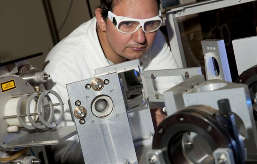 Lasers can go where no man or machine can. Dr. Alexandru Boboc aligns a far infrared optical laser used to study plasma properties. [Image courtesy of CCFE.]