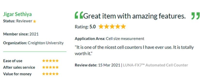 Don’t just take our word for it, here’s what reviewers on SelectScience have to say about the LUNA™ series: