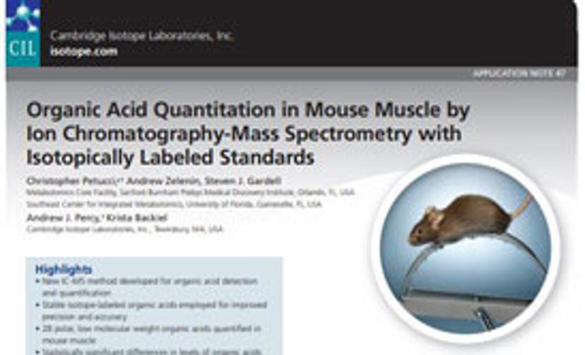 Organic acids (OAs) play pivotal roles in a host of metabolic pathways. This note, by Cambridge Isotope Laboratories, summarizes an IC-MRM/MS method with stable isotope standards and its application to quantify polar OAs in mouse muscle.Download Method