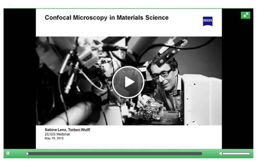 In this webinar, Sabine Lenz discusses using confocal microscopy in materials science with Torben Wulff from ZEISS Microscopy, giving examples of applications and the different microscopes used.