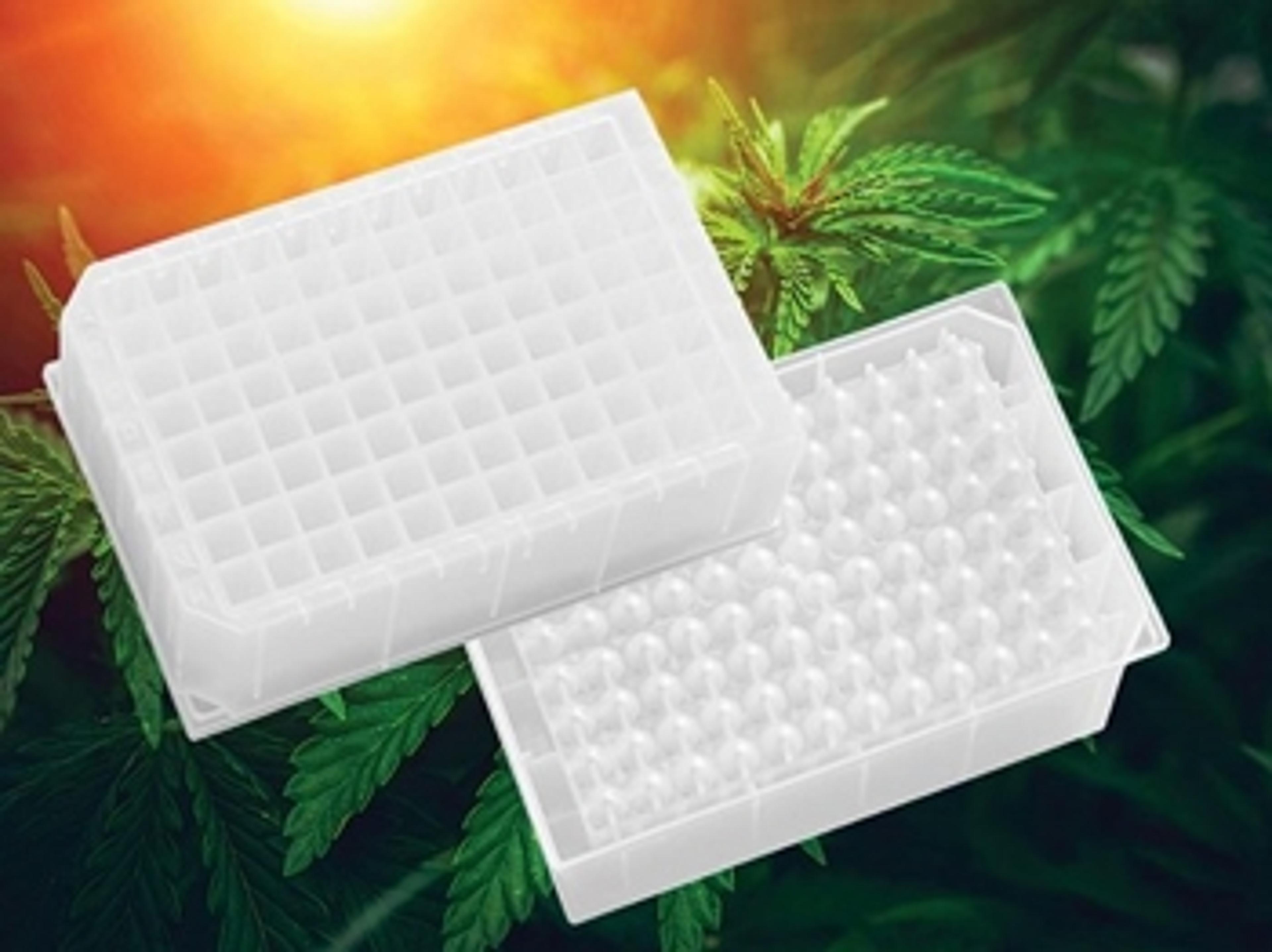 The microplate is specifically designed for labs processing cannabis samples for analysis of tetrahydrocannabinol and cannabidiol