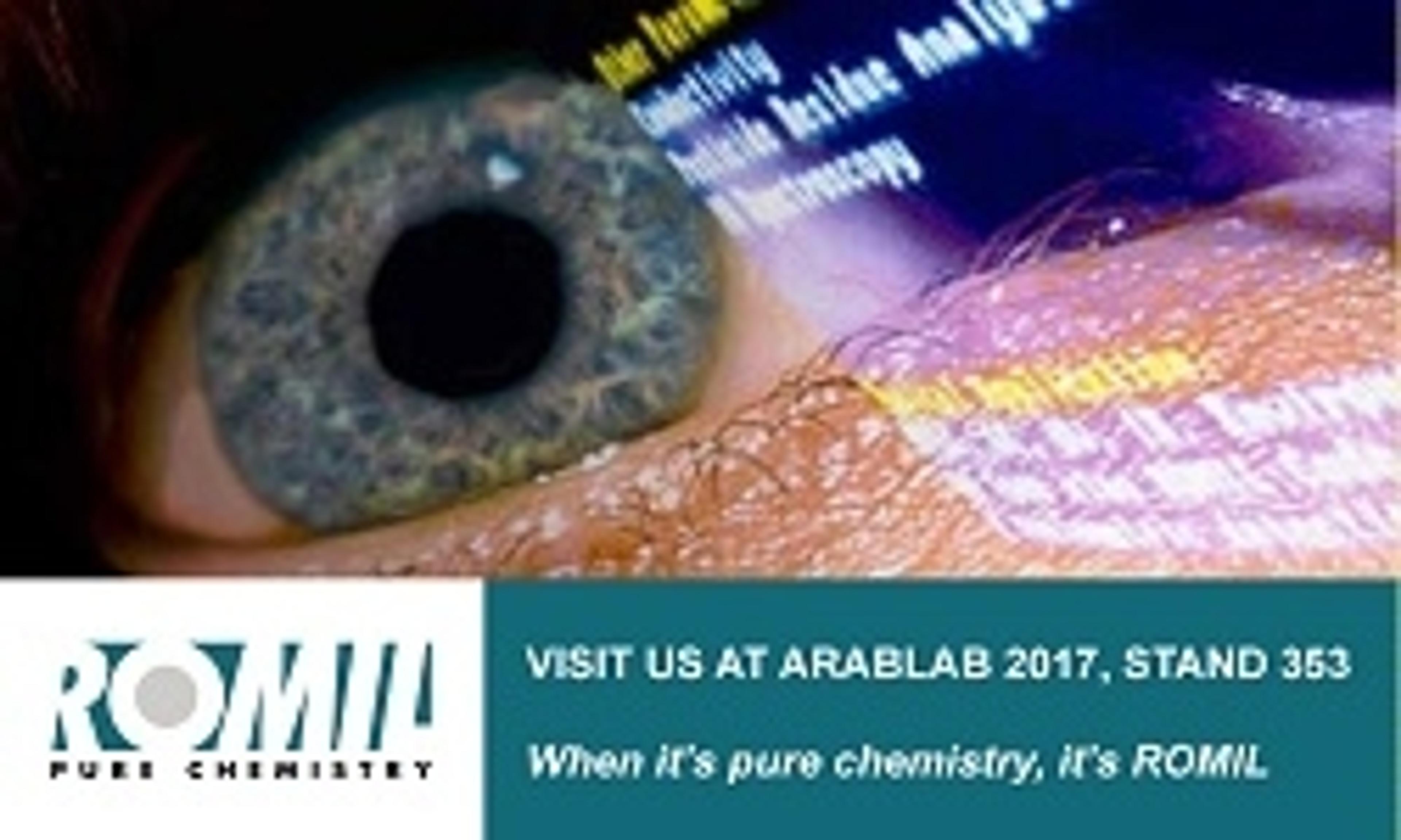 Visit ROMIL at Stand #353 at ARABLAB 2017 between the 20th and 23rd of March to discover superior purity solvents and impressive performance at a surprisingly good price