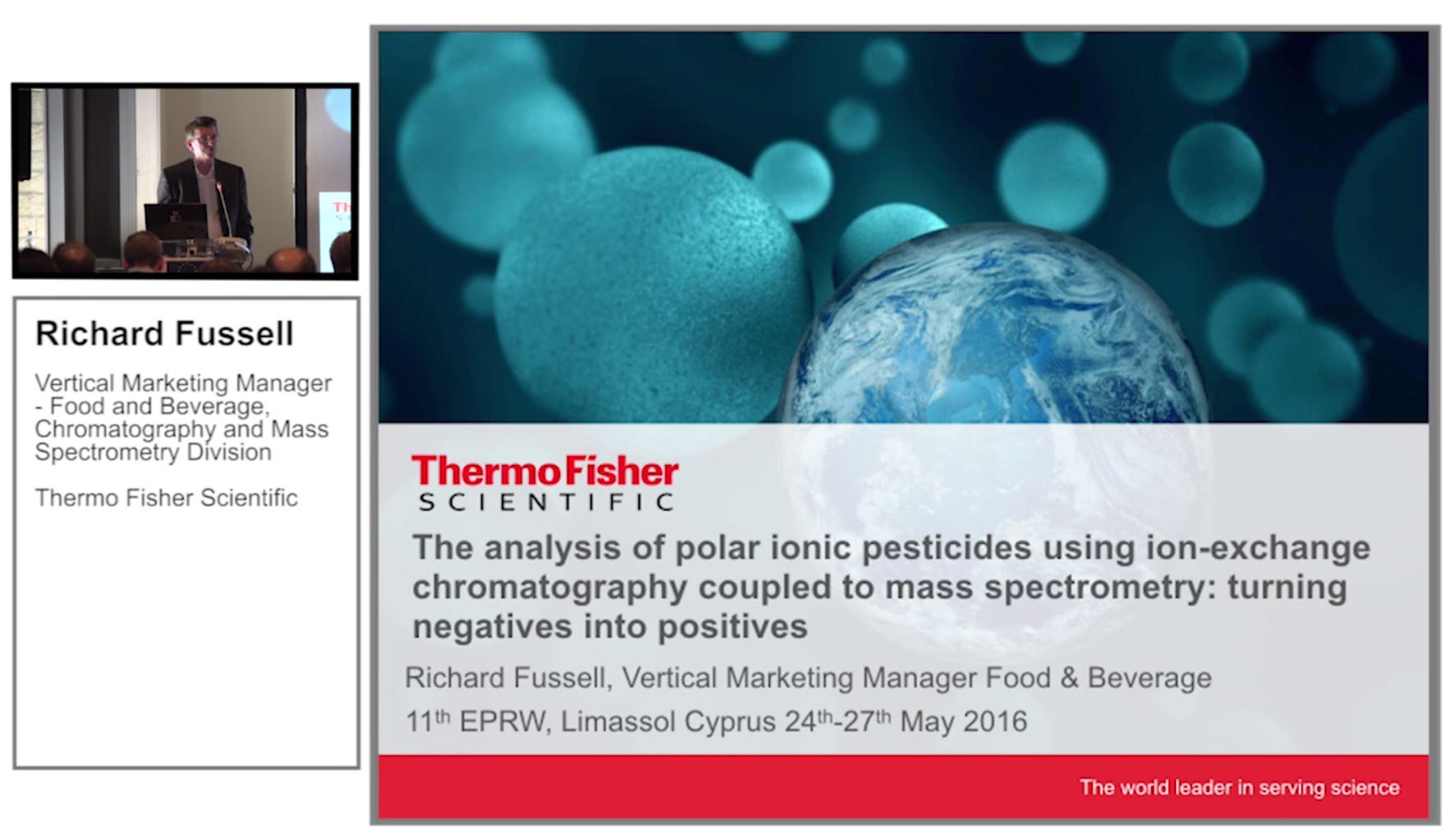 In a presentation recorded at EPRW, Richard Fussell, Thermo Fisher Scientific, described how IC-MS can be used to overcome the difficulties encountered with the use of conventional chromatographic methods for the analysis of polar ionic pesticides