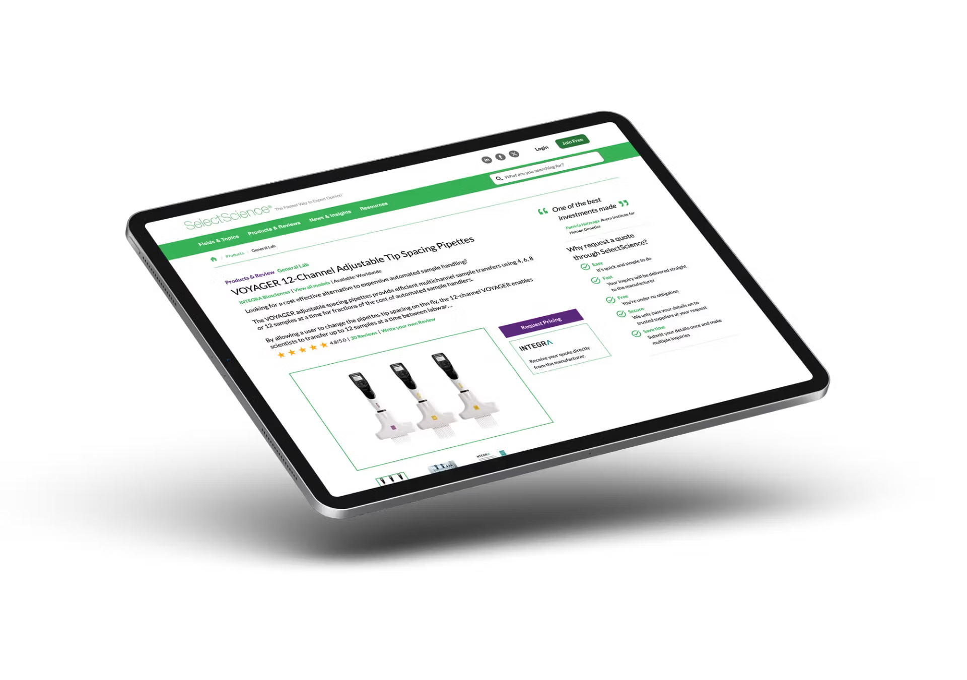 “As a small biotech company, it is important for us to maximize every marketing dollar that is budgeted and SelectScience plays a key role in helping us do that. We have found the peer review program very impactful; helping to establish credibility in a very competitive market. Participation in SelectScience webinars has consistently produced quality leads contributing to an increase in our overall lead generation efforts. I have found SelectScience team members a pleasure to work with.”