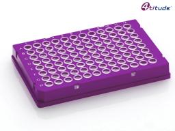 Clear low profile 0.1 ml polypropylene wells, a purple rigid polycarbonate frame, and a cut corner at H1. This plate combines the advantages of thin-walled polypropylene wells for maximum heat transfer with a rigid polycarbonate frame to increase the thermal stability of the plate during the PCR process. The polypropylene wells are the perfect material for PCR, as they are both inert and non-wetting, meaning RNA, DNA and enzymes cannot bind, and the polycarbonate frame eliminates warping due to its thermal stability, meaning that seal the remains unbroken - preventing sample evaporation. Features: