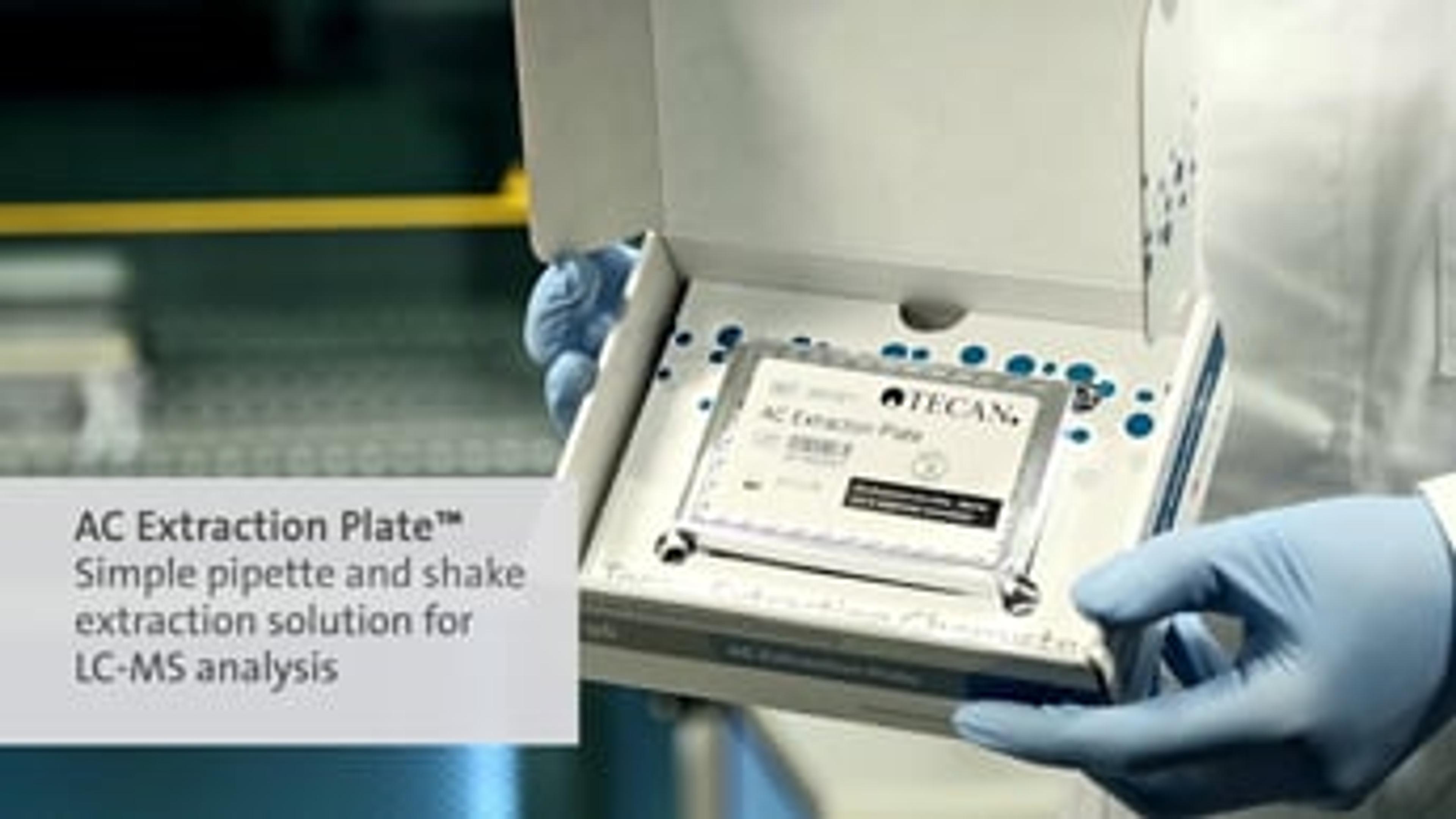 Tecan’s AC Extraction Plate™, which is based on proprietary TICE™ (Tecan Immobilized Coating Extraction) technology, is a revolutionary, automation­friendly solution designed to streamline sample preparation for LC-MS analysis of small molecules. The AC Extraction Plate™ requires fewer and easier steps than with SPE and SLE (supported liquid extraction) comparable plate based technology. Most importantly, with the AC Extraction Plate™ there is no need for filtration, centrifugation or evaporation and sample preparation can be easily automated.