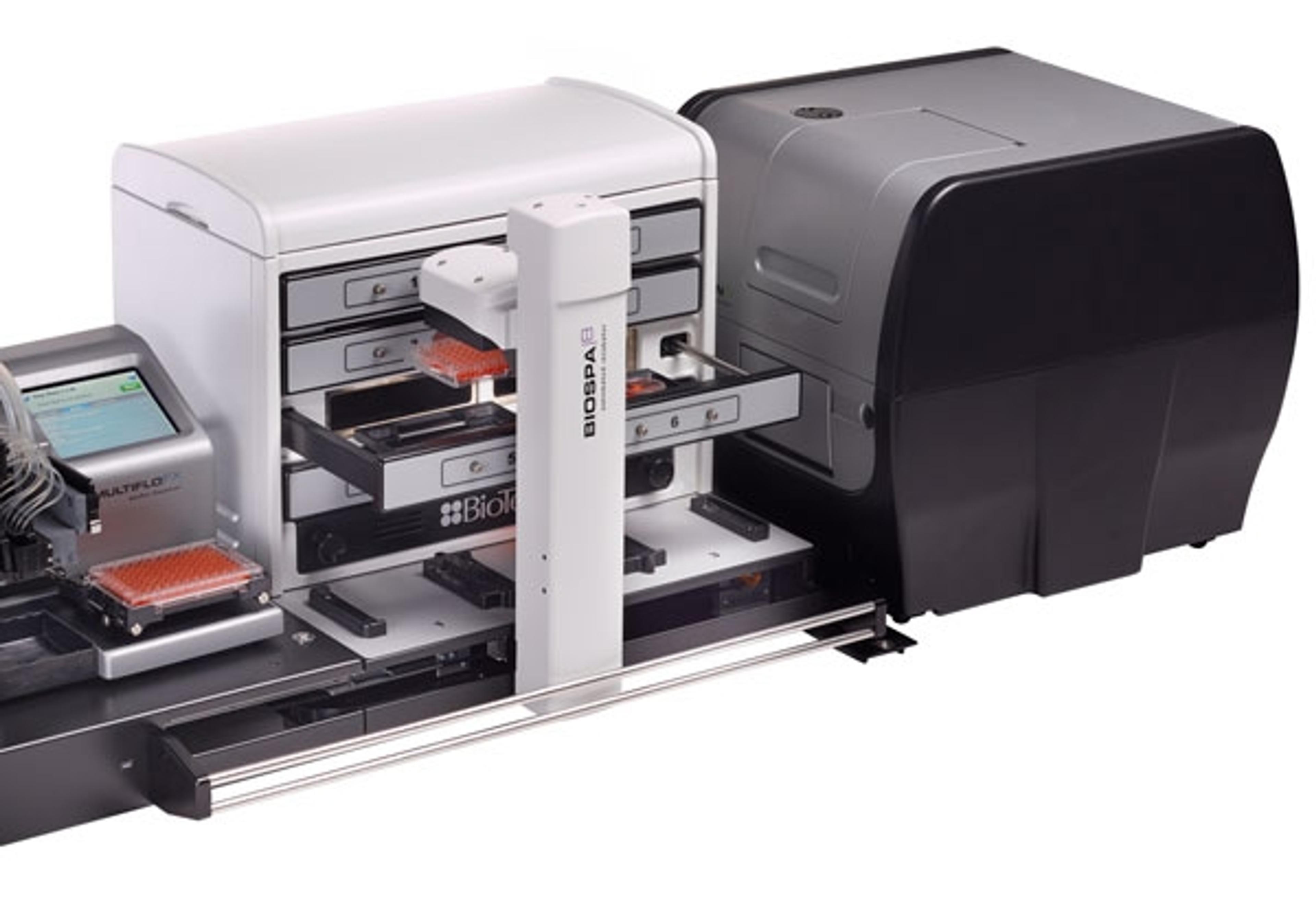 We have found the BioSpa8 to seemlessly integrate within our BioTek suite of instruments comprised of a plate washer/dispenser (EL406) and an imager (Cytation 3). We generally use the BioSpa8 for 7-day protocols and find that it maintains heat and CO2 extremely well. In fact, it consumes very little CO2. The robotic arm that captures plates and places them within the Cytation 3 works extremely well and has enabled us to conduct both short (1 day) and longer-term (7days), multi-plate assays.