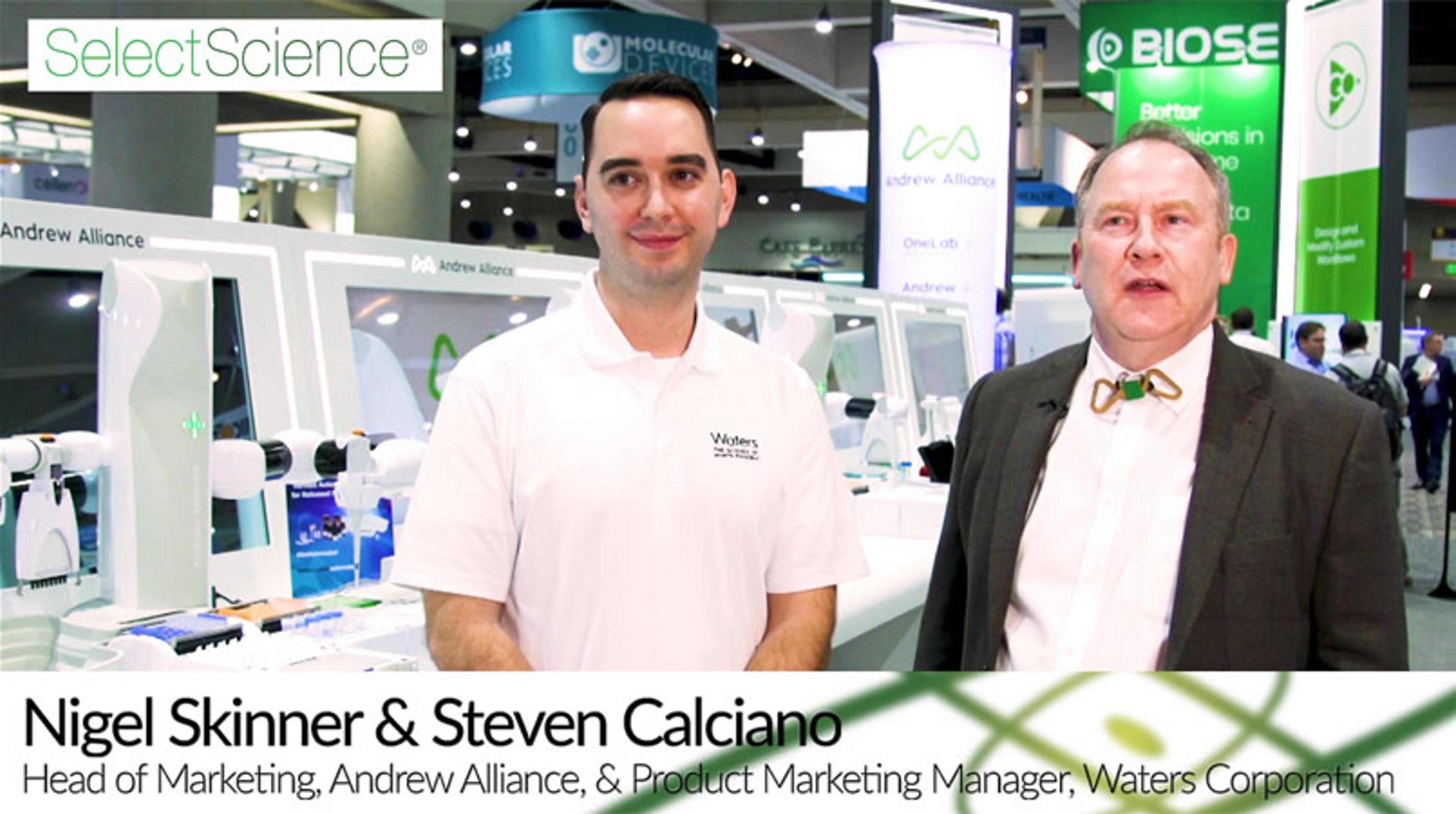 In this video, Nigel Skinner, Head of Marketing at Andrew Alliance, and Stephen Calciano, Product Marketing Manager for Waters, discuss Waters’ acquisition of Andrew Alliance and how it will lead to an acceleration in the development of solutions for complex analytical workflows across the industry, highlighting the automation of Waters protocols on OneLab software and the Andrew+ pipetting robot.
