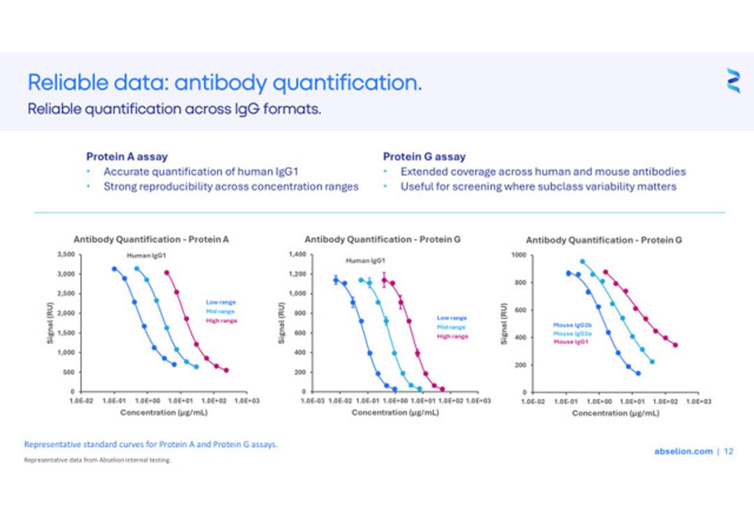 In this application note, Abselion demonstrates the Amperia™ platform, offering a streamlined alternative, enabling consistent, sensor-based mAb quantification directly from cell culture supernatants using an inverse occupancy assay format, with adaptable throughput and simplified setup.