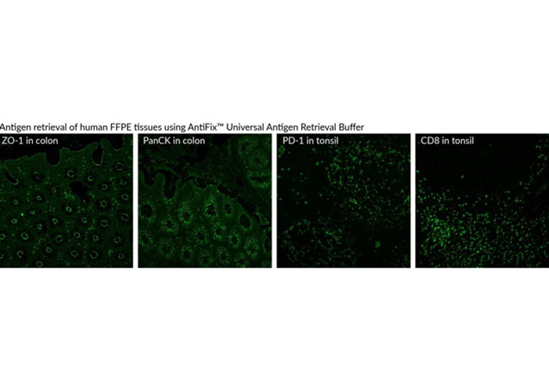AntiFix™ Universal Antigen Retrieval Buffer provides excellent heat unmasking for a wide variety of targets at neutral pH, reducing the need for buffer optimization.