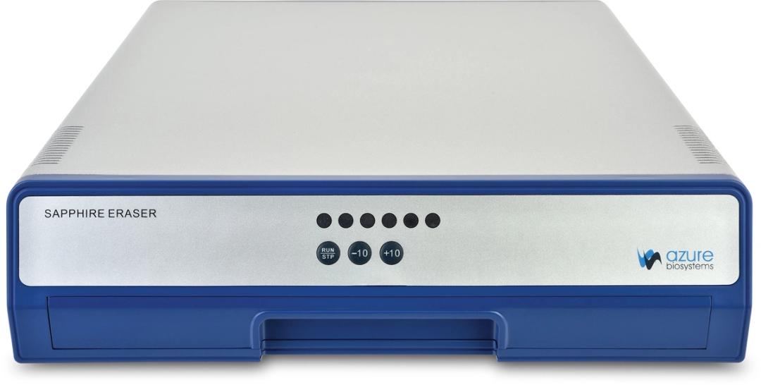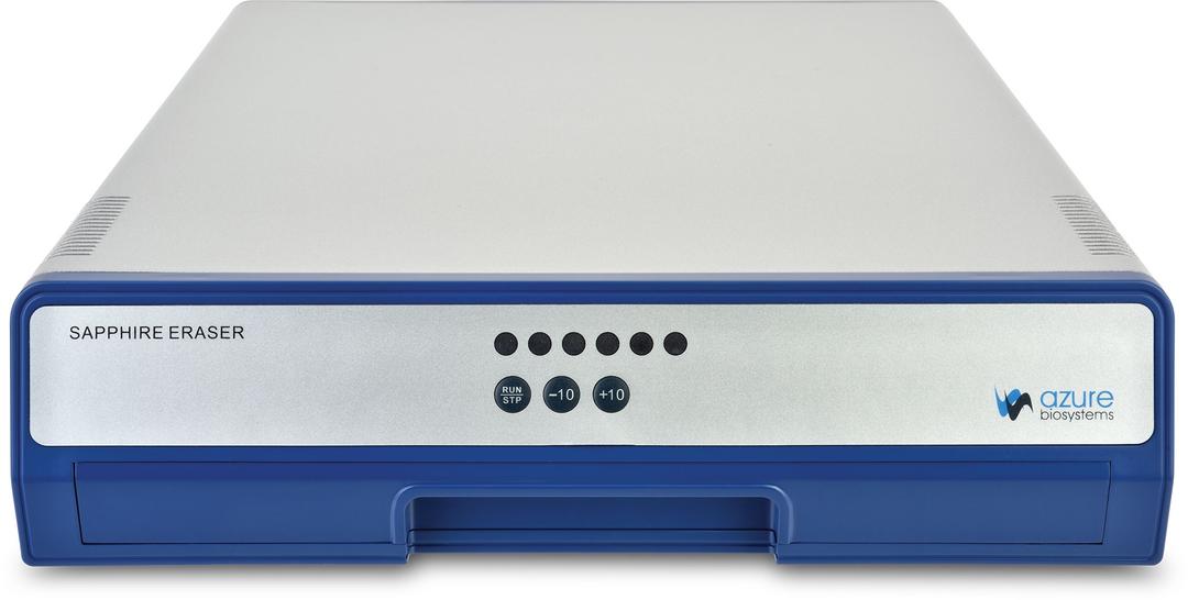 With its low profile and slim design, the Sapphire Eraser can easily fit into crowded lab spaces. It uses 625 nm LEDs to quickly remove signal and restore storage phosphor screens to a basal level. The Sapphire Eraser has a minimal, three-button interface that's simple and intuitive for lab members of all experience levels.