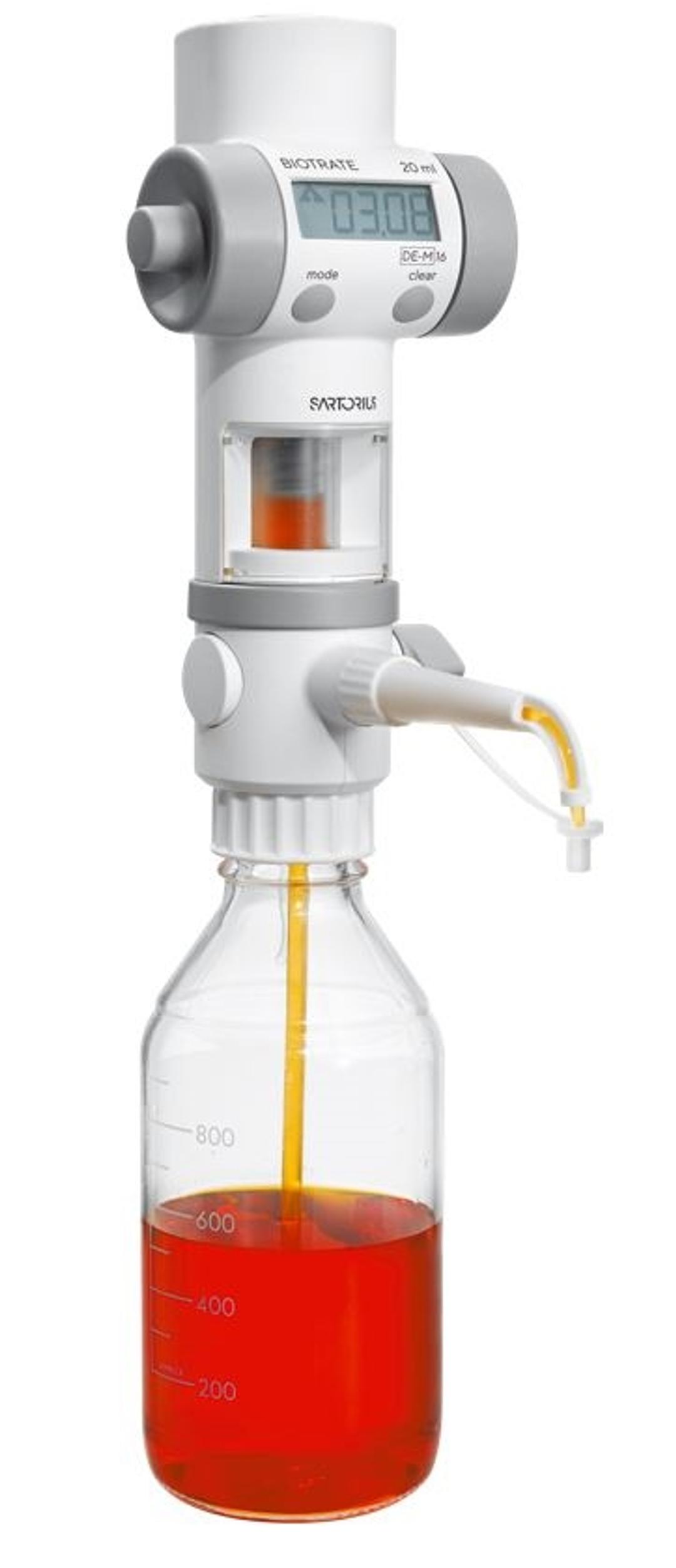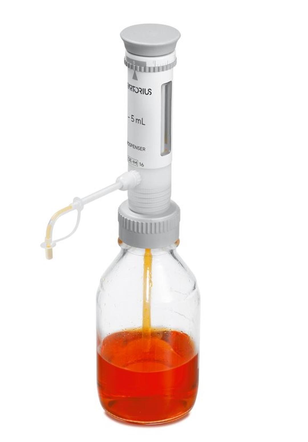 Sartorius bottle-top dispensers, Proline® Prospenser, Prospenser and Biotrate, are designed for trouble-free, safe and reliable liquid dispensing directly from a supply bottle containing strong acids, bases and solvents, for example.