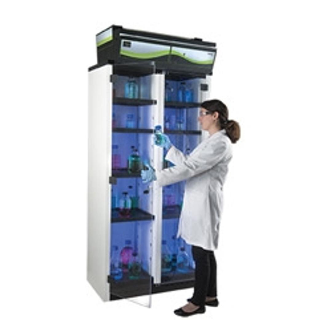 Best suited for the storage of liquids or powders. Choose a HEPA or carbon filter. Includes a sampling port, locking double doors for easy access, adjustable shelves with built-in spill tray, and a published chemical listing with the retention capacity of the filter.