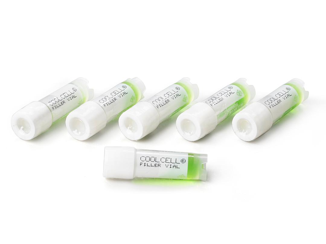 To ensure cell freezing rate consistency and uniform results when using CoolCell containers, insert a CoolCell Filler Vial into empty wells when freezing less than a full load. It is suitable for repeated use and compatible with CoolCell 5ml LX containers. 6 per pack.