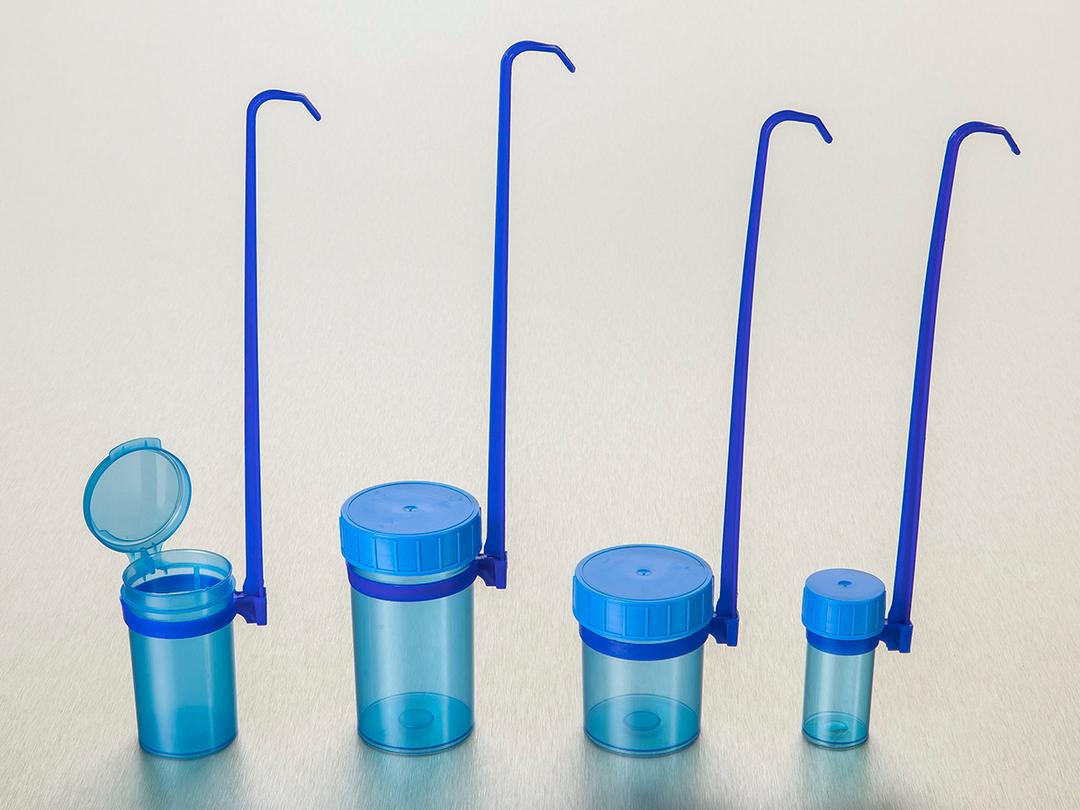 Dippers with removable handle, 40 mL to 180 mLBlue Polypropylene (PP) containersRemovable handleTamper-evident, single resealable plastic bagSampling/collection