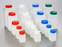 Corning® Gosselin™ Square HDPE Bottle, 2 L, Graduated, 58 mm Red Cap with Seal, Assembled, 50/Case