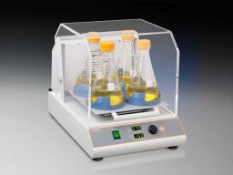 Truly a benchtop style, the lid on the Corning benchtop shaking incubator has a low pivot point which provides a space-saving size sure to fit on the lab bench and under shelves. Each unit includes a software package, which provides the option of saving data to an external computer or monitoring rpm and temperature throughout runs. The maximum capacity is 4 x 1L flasks.