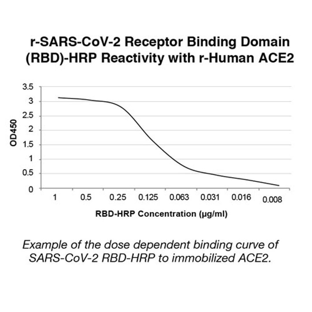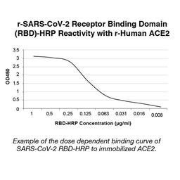 The test is a solid phase enzyme-linked immunosorbent assay (ELISA) using a chromogenic enzyme substrate as an indicator. The SARS CoV-2 recombinant viral entry receptor protein, angiotensin-converting enzyme 2 (ACE2), is immobilized to polystyrene wells of a microplate (solid phase). In the wells of a separate incubation plate, a positive control, negative control, calibrator control and test specimens are diluted and added to the wells along with the diluted soluble recombinant SARS CoV-2 receptor binding domain (RBD) recombinant protein conjugated to horseradish peroxidase.