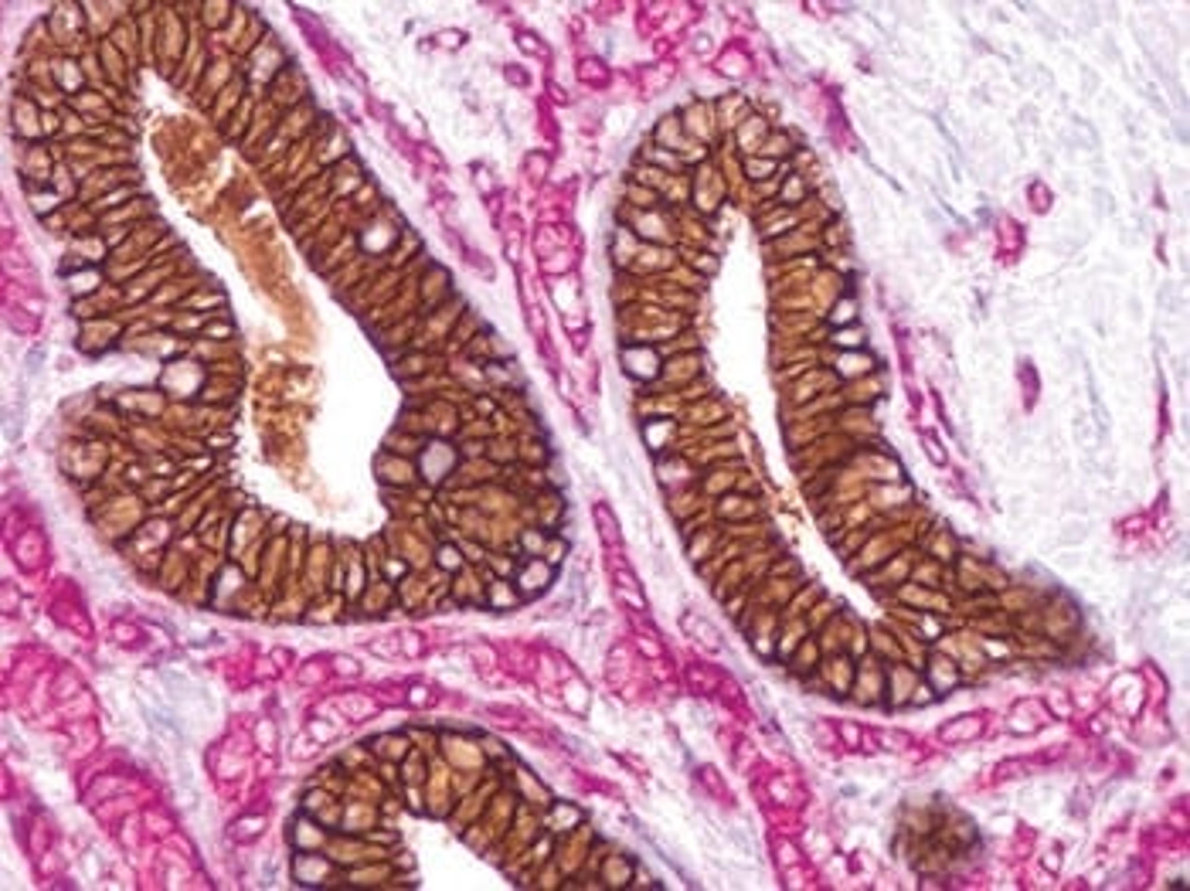 Twenty identified cytokeratins make up a complex family of intermediate filaments. Cytokeratin 5 (58kDa) & cytokeratin 6 (56kDa) are type II high molecular weight keratins that are expressed in a broad range of normal tissues including breast, prostate, mesothelium, skin and esophagus. Anti-Cytokeratin 5 & 6 is a useful immunohistochemical marker in the identification of mesothelioma and lung squamous cell carcinoma.