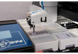 The easyPunch STARlet automates punching and processing of framed sample collection cards (e.g. FTA cards) spotted with blood, plasma, urine, buccal swabs, saliva, and other biofluids. It can also automate additional downstream applications such as nucleic acid extraction. Up to 200 FTA cards may be loaded at once. Each is identified and fully tracked.