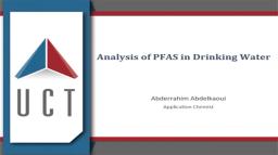 In this video, Abderrahim Abdelkaoui, application chemist at UCT, discusses analytical solutions for the measurement of per- and polyfluoroalkyl substances (PFAS) in drinking water. Abdelkaoui discusses the lifecycle and impact of PFAS in the environment and optimized methods for detecting PFAS contamination.