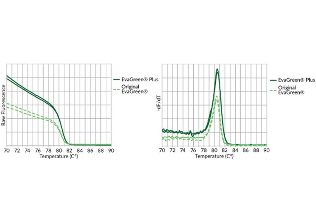 EvaGreen® Plus Dye has an improved signal-to-noise compared to original EvaGreen® dye, for higher sensitivity in DNA amplification applications.