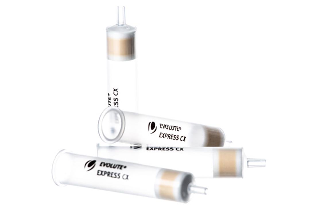 - EVOLUTE® Express CX: mixed-mode hydrophobic/strong cation exchange sorbent for extraction of basic compounds from aqueous samples