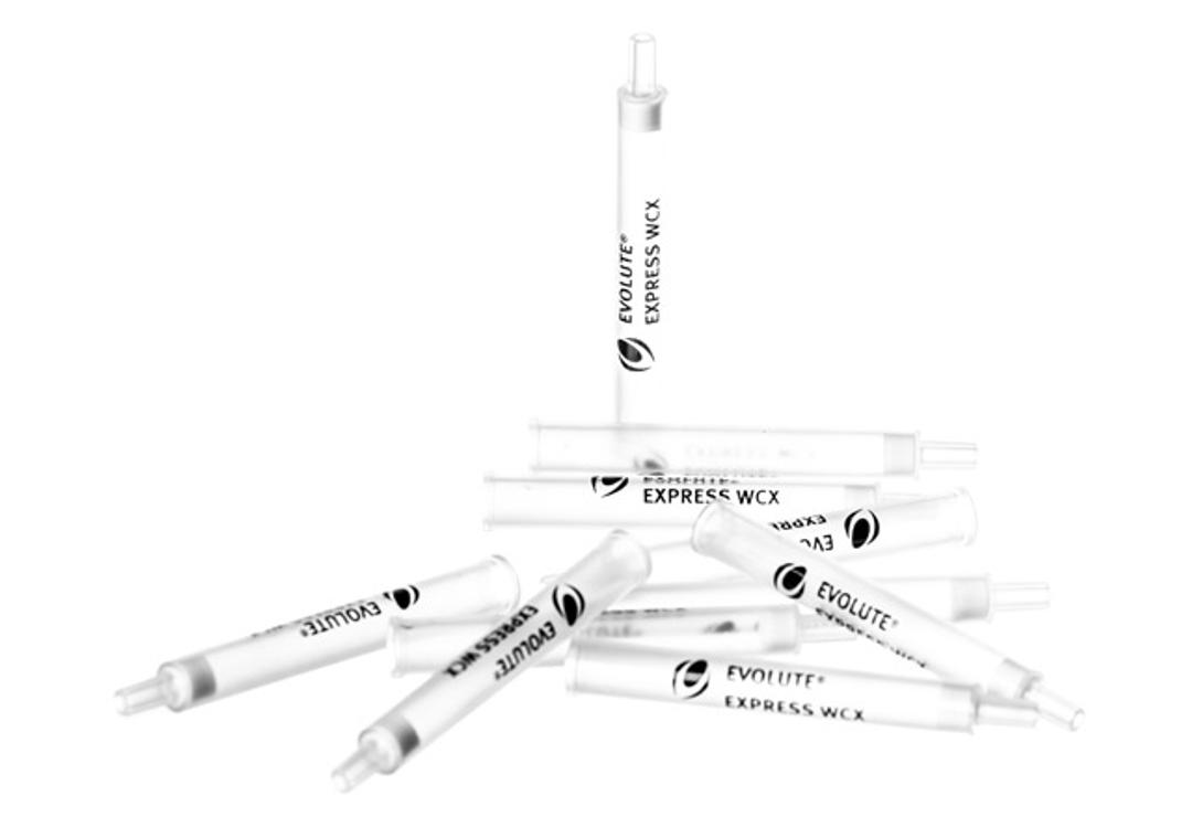 - EVOLUTE® Express WCX: mixed-mode hydrophobic/weak cation exchange sorbent for extraction of strongly basic analytes from aqueous samples