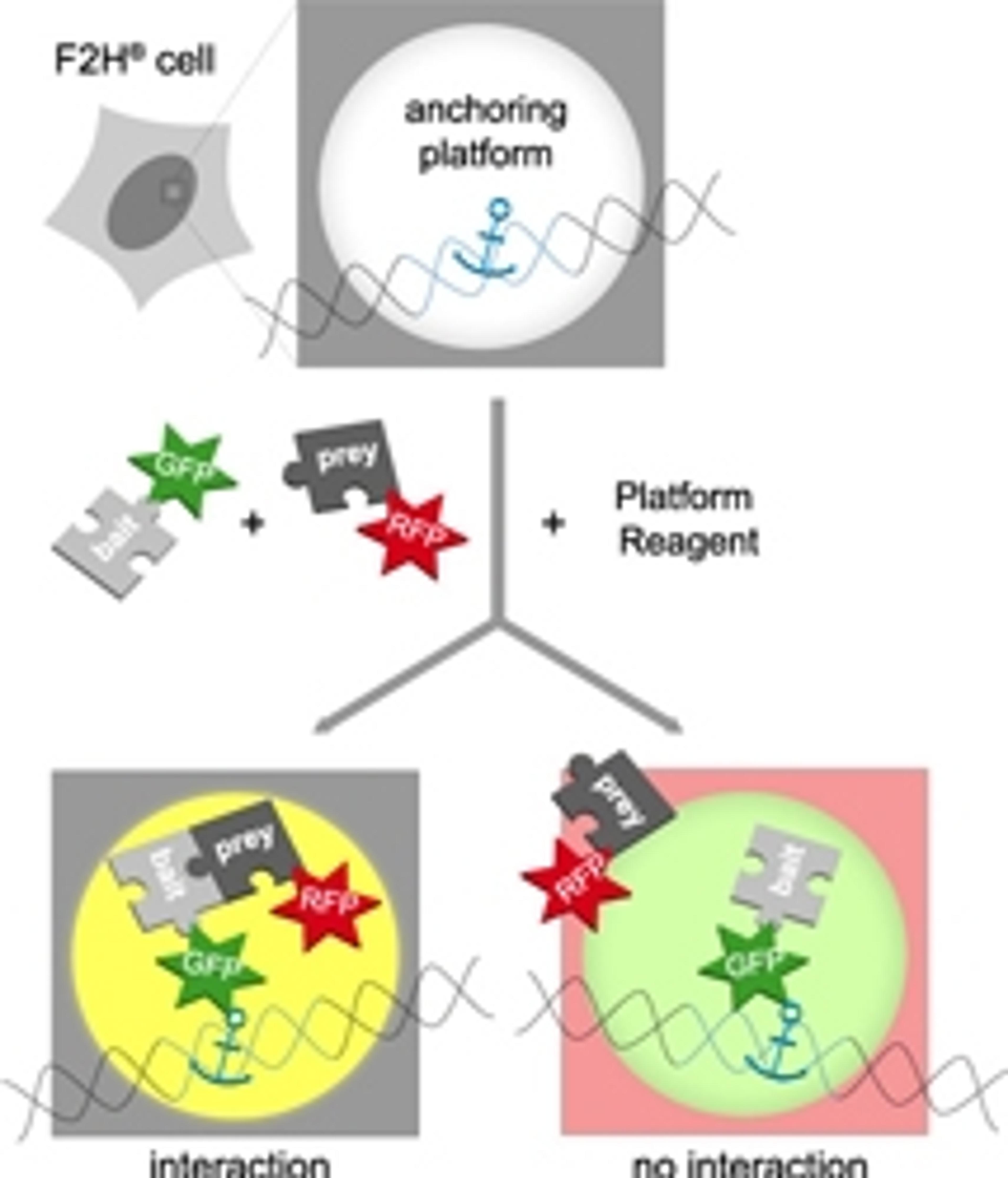 - GFP- and RFP-fusion proteins (bait and prey) are transiently expressed in F2H® cells