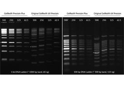 This product is an improved version of our original 6X GelRed® Prestain Loading Buffer (catalog number 41009) with brighter signal and more consistent DNA migration. When DNA is bound to GelRed® before electrophoresis, the ratio of dye to DNA can cause variable shifts in DNA migration, making it difficult to compare DNA fragment sizes between samples. GelRed® Prestain Plus 6X DNA Loading Dye is formulated to minimize this DNA migration shift, for greater consistency. GelRed® prestaining is simple and can avoid migration issues seen with GelRed® precast gels.