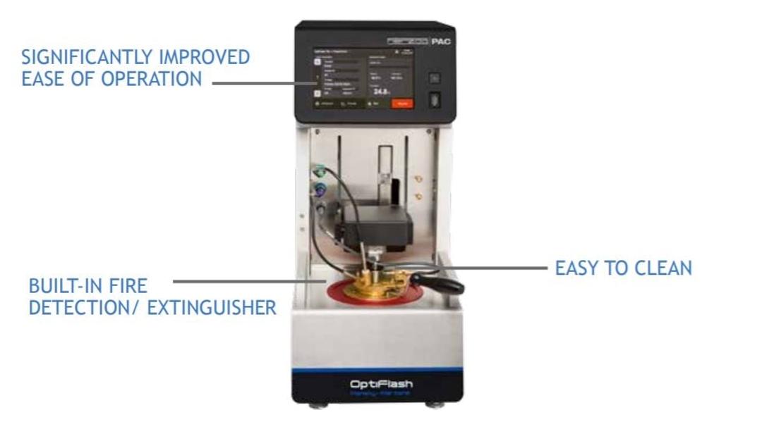 The Herzog OptiFlash Pensky Martens determines the flash point of petroleum products, biodiesels, solvents, fluxed bitumen, food, and beverages up to 400°C.