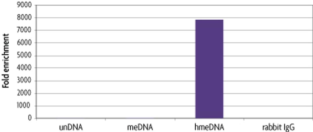 The hMeDIP Kit is designed to immunoprecipitate and enrich for DNA fragments containing 5-hydroxymethylcytosine (5-hmC).