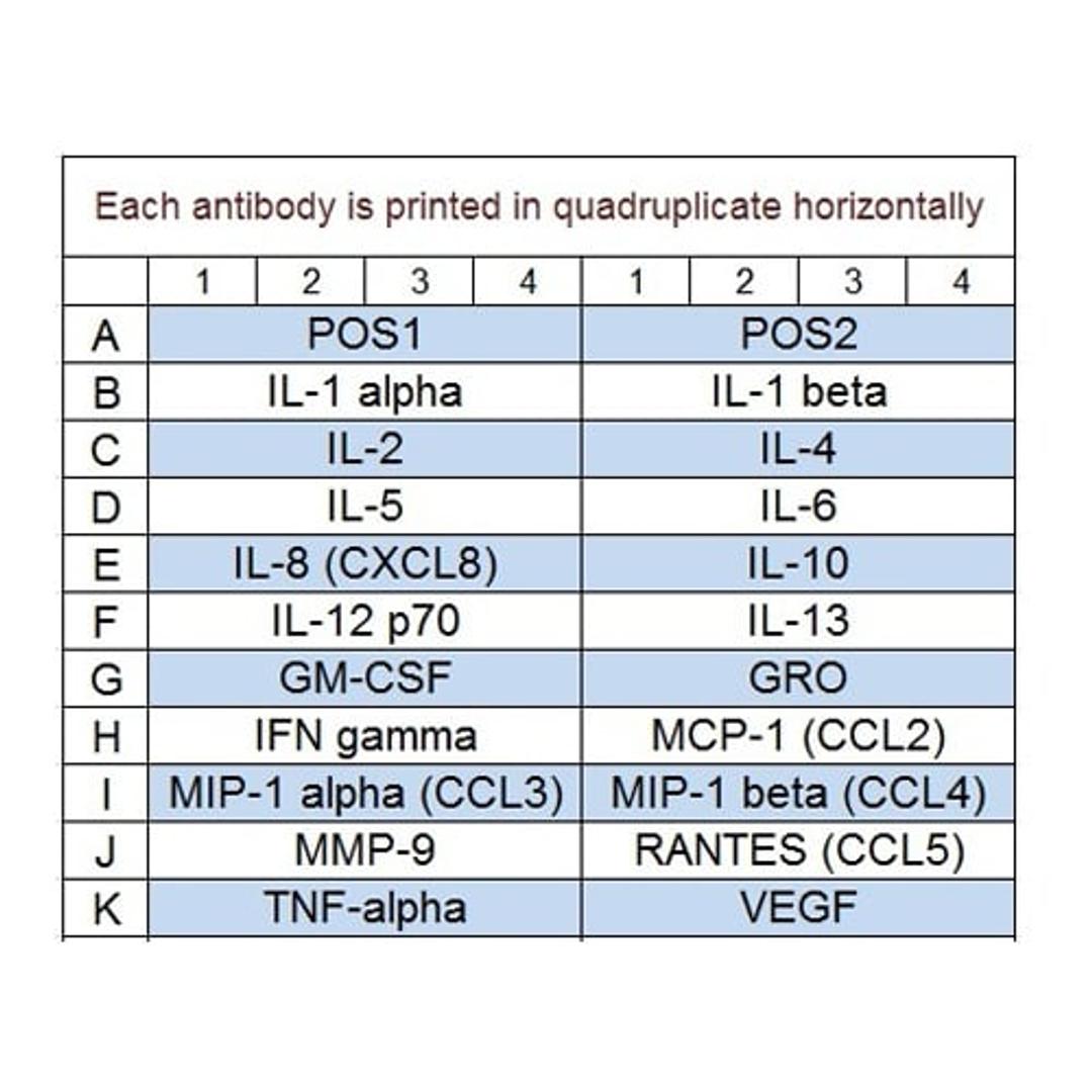 Quantibody® Human Cytokine Array 1 Kit. Detects 20 Human Cytokines. Suitable for all liquid sample types.